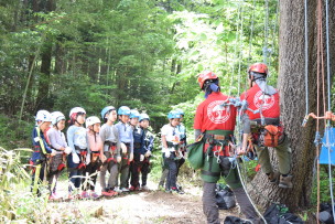 あけちクラブでは、木々の大切さと自然の楽しさやすばらしさを知ってもらうため、「ツリークライミング」の体験会を実施しています。専用のロープとサドル(安全帯)を使って木に登り、木や森・自然との一体感を味わうプログラムです。体力に自信が無くても大丈夫!!