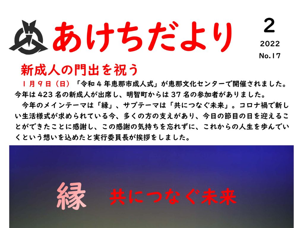 明智みらい会議情報誌「紡ぐ」vol15月6月の明知鉄道情報「クラシックカーフェスティバル2022」開催のお知らせ地域自治区運営協議会だより令和4年4月1日号あけちだより4月号4~5月の大正村情報恵那三学塾 市民講座2022前期 明智コミュニティセンター開催講座3月4月の明知鉄道情報あけちだより3月号魅力発信&移住促進アクション PR動画 「明智においでんさい!」第1弾が完成しました!あけちだより2月号地域自治区運営協議会だより令和4年2月1日号 8910111213141516