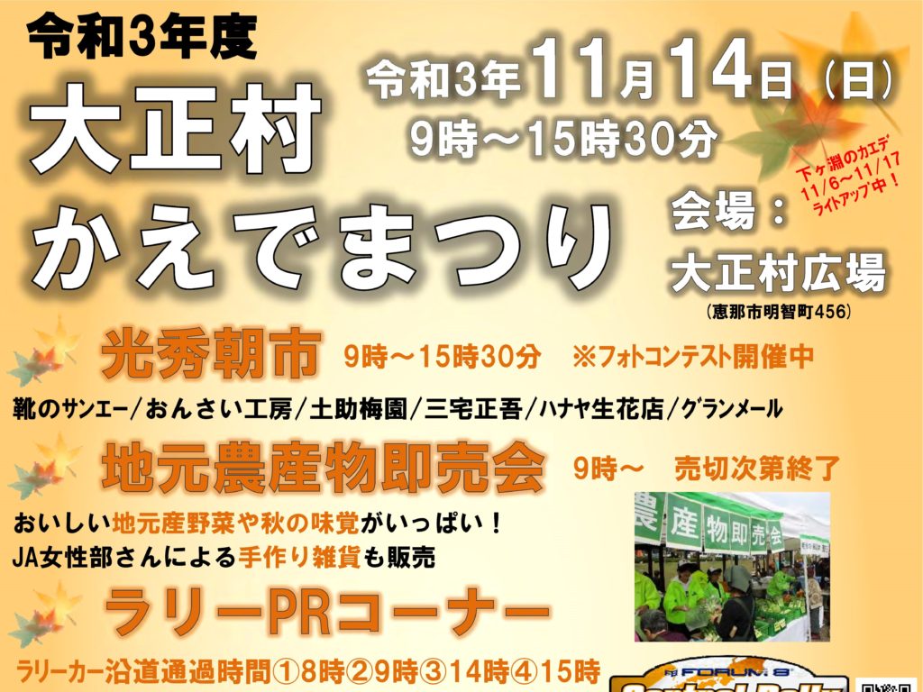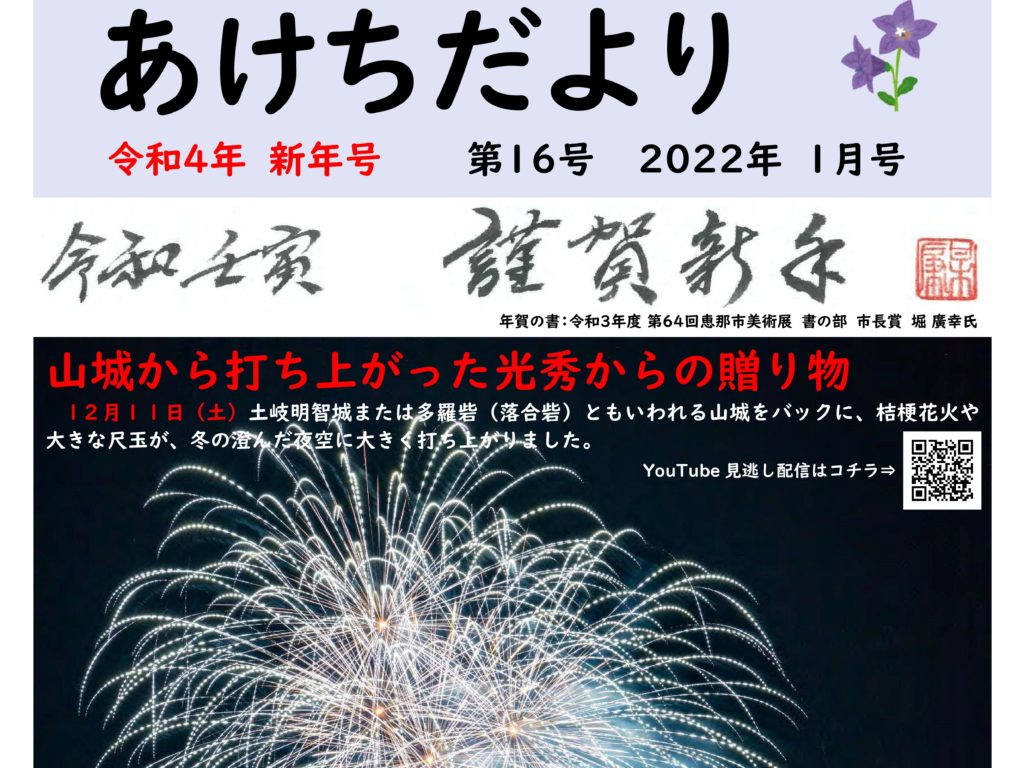 2~3月の大正村情報「え~な!!日本大正村・恵那峡リモート・チャレンジラン2022」参加者募集のお知らせ1月2月の明知鉄道情報あけちだより1月号「ふるさと納税」ご協力お願いします「第31回明智町花火大会~明智光秀からの贈り物~」開催のお知らせふるさと納税を活用して「大正村かえでまつり」を開催させていただきました~お礼~あけちだより12月号「ウィンターイルミネーション2021」点灯のお知らせ12~1月の大正村情報「大正村かえでまつり」開催のお知らせ「第48回光秀まつり」開催のお知らせ 91011121314151617