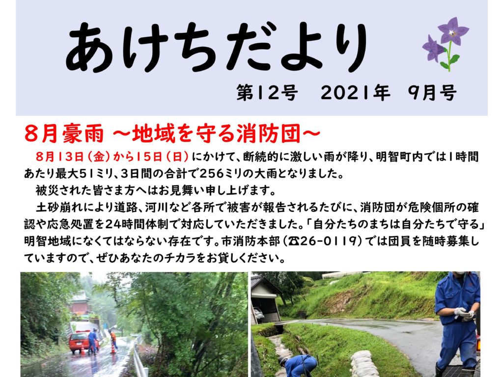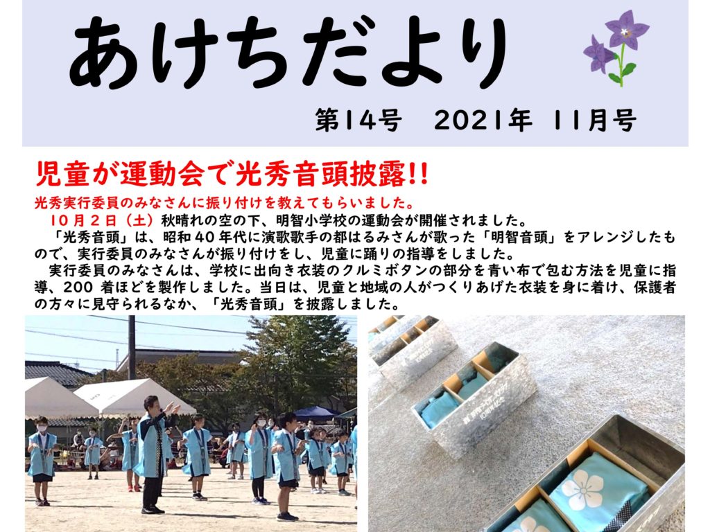 「下が淵紅葉ライトアップ」開催のお知らせ地域自治区運営協議会だより令和3年11月1日号あけちだより11月号11月12月の明知鉄道情報10~11月の大正村情報あけちだより10月号「石川さゆりコンサート2021恵那特別公演」チケット販売のお知らせ「まちづくり活動事業補助金募集」のお知らせあけちだより9月号9月10月の明知鉄道情報恵那市三学塾 市民講座2021後期 明智コミュニティセンター開催講座「光秀×古民家 婚活大作戦」開催のお知らせ 101112131415161718