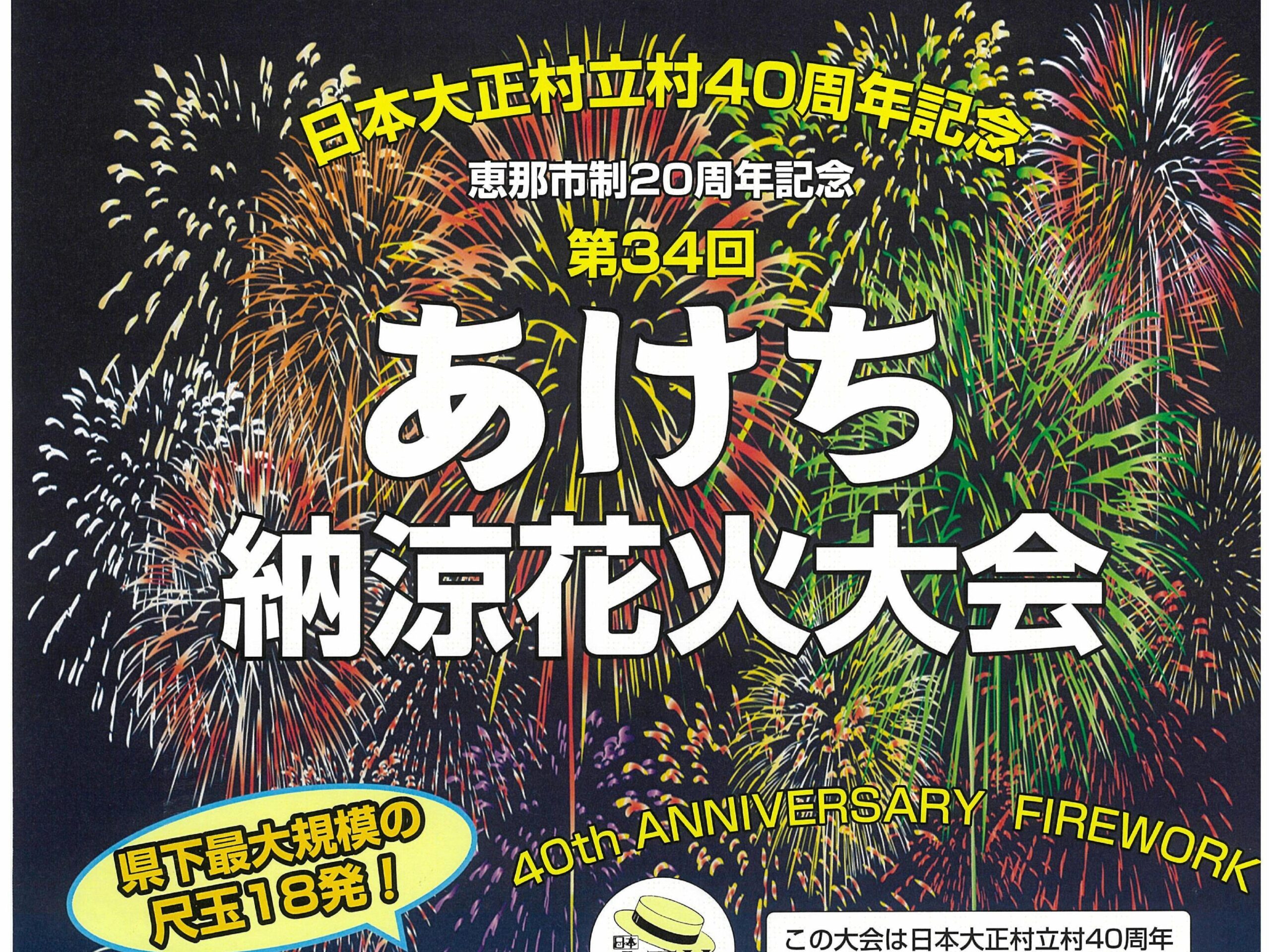 「クラシックカーフェスティバル2025」開催のお知らせ「第36回日本大正村おひなまつり」開催のお知らせ「ウィンターイルミネーション2024」点灯と「点灯イベント」開催のお知らせ「大正村かえでまつり」開催のお知らせ「若一神社・八王子神社例大祭」開催のお知らせ「日本大正村立村40周年記念・恵那市制20周年記念・第34回明智町納涼花火大会」開催のお知らせ「明智ぎおん祭」開催のお知らせ「第3回ホタル観賞会in下が淵」開催のお知らせ第16回恵那南高等学校定期演奏会のお知らせ 12345