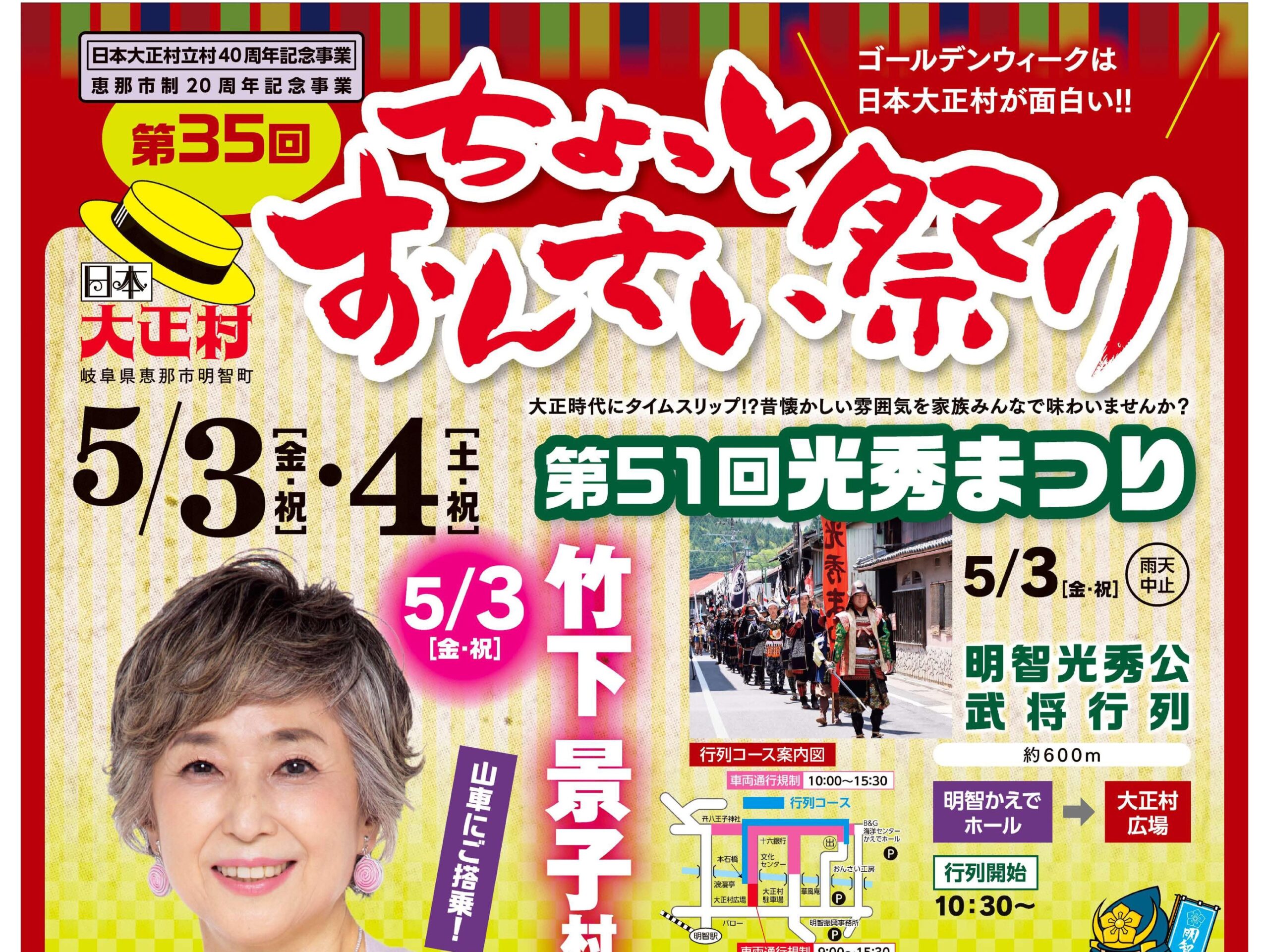 ホーム > 「第35回ちょっとおんさい祭り・第51回光秀まつり」開催のお知らせ 楽しもまい 「駆ける!つなぐ! 大正ロマン&寒天の里&城下町 恵那フォトロゲイニング2024」開催のお知らせ「第35回ちょっとおんさい祭り・第51回光秀まつり」開催のお知らせ「クラシックカーフェスティバル2024」開催のお知らせ第35回日本大正村おひなまつり「ウィンターイルミネーション2023」点灯と「点灯イベント」開催のお知らせ「第38回日本大正村クロスカントリー」参加者募集のお知らせ「大正村かえでまつり」開催のお知らせ「第33回明智町納涼花火大会」開催のお知らせ「明智ぎおん祭」開催のお知らせ 123456 カテゴリー あけちだより お知らせ 乗ろまい 地域協議会だより 学ぼまい 明智みらい会議 楽しもまい 自然の癒し 行こまい 最新記事 「クラシックカーフェスティバル2025」開催のお知らせあけちだより4月号恵那三学塾 市民講座2025前期 明智コミュニティセンター開催講座4月5月の大正村情報あけちだより3月号