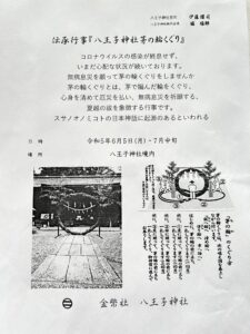 「八王子神社茅の輪くぐり」のお知らせ