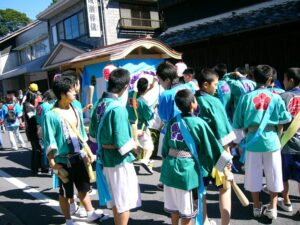 またこの2日間は、3地区の余興団が太鼓を叩きながら町内を練り歩きます。