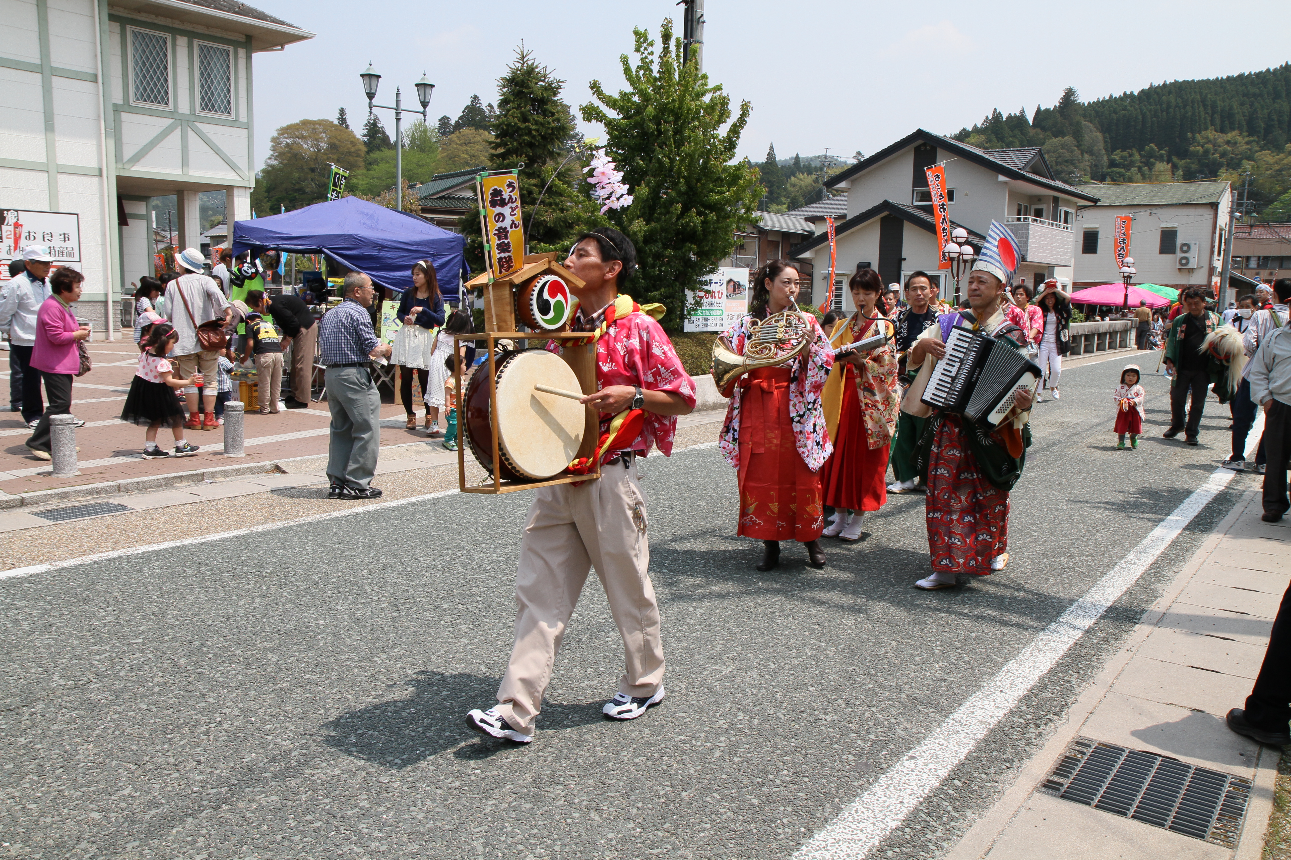 ◎八王子神社の秋の大祭。各地区の余興団が太鼓を叩いて町中を練り歩きます。 - [隔年6月頃]
